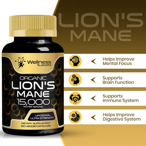Mejora la claridad mental y concéntrate de forma natural con las cápsulas orgánicas Lions Mane. Nuestra potente fórmula de Hericium erinaceus de 15000 mg puede mejorar la función cognitiva, apoyando el recuerdo de la memoria, la concentración y la salud general del cerebro.