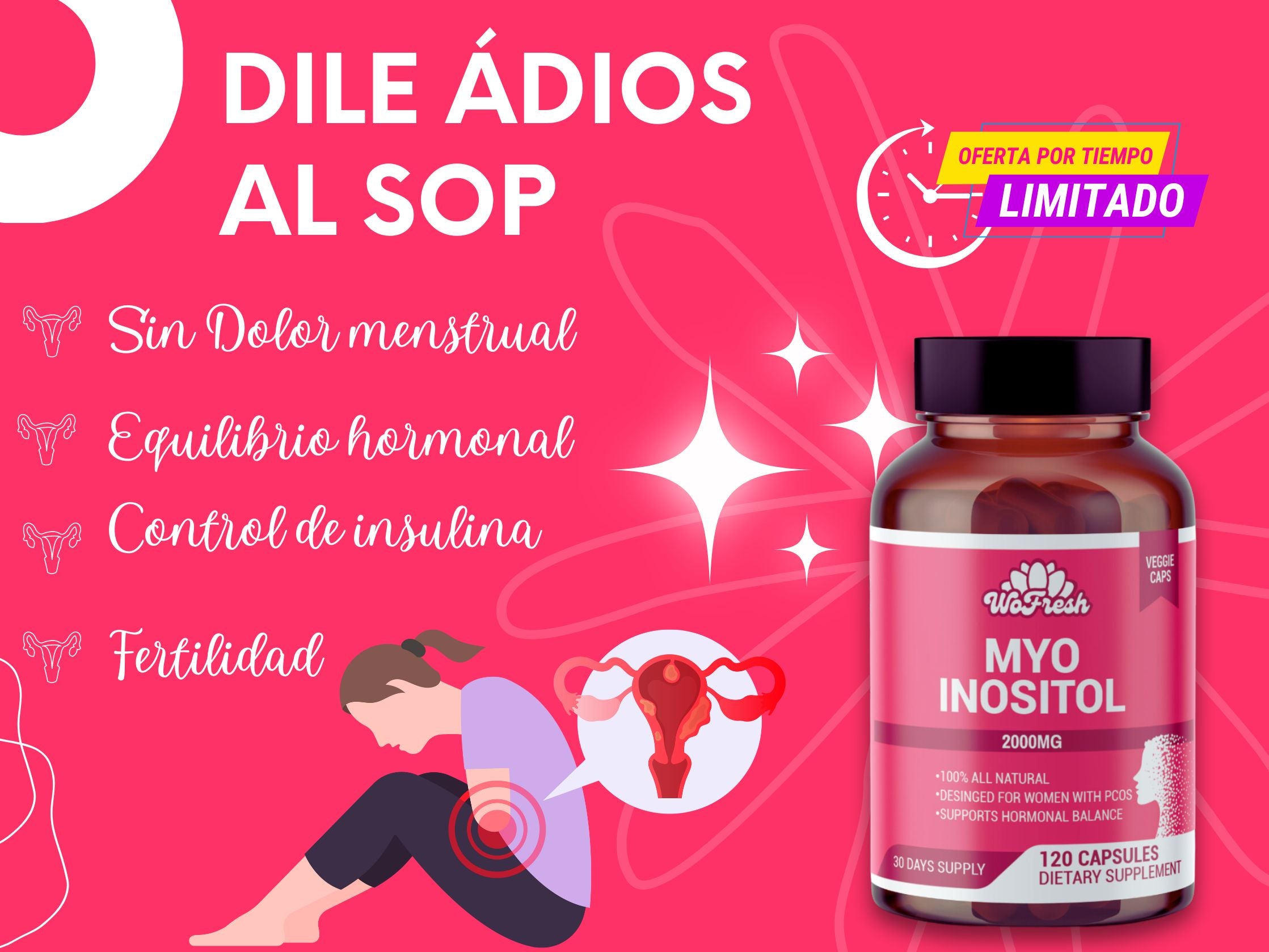 Myo Inositol 2000 mg, 120 cápsulas veganas, 100% puro y completamente limpio sin aditivos ni químicos la dosis diaria perfecta recomendada.